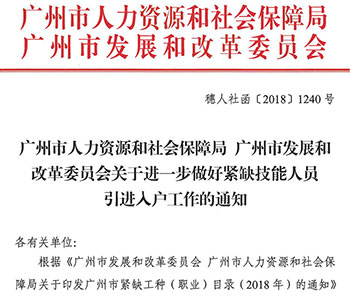 具有廣東省或廣州市人力資源和社會保障部門頒發(fā)的高級工(三級)職業(yè)資格證書,屬于緊缺工種,高中或同等學歷起,在廣州連續(xù)居住、就業(yè)及參保滿2年,年齡35周歲以內。...